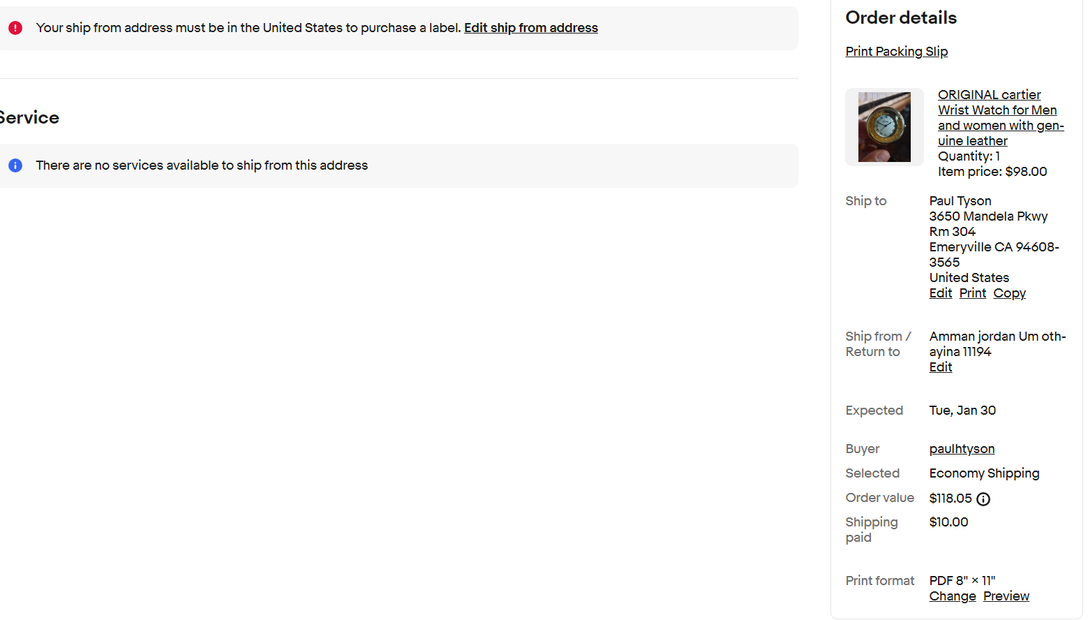 جمله اعتياديه لا تهتم لها عليك الان طباعه عنوانك وعنوان المشتري والذهاب الي البريد وشحن المنتج