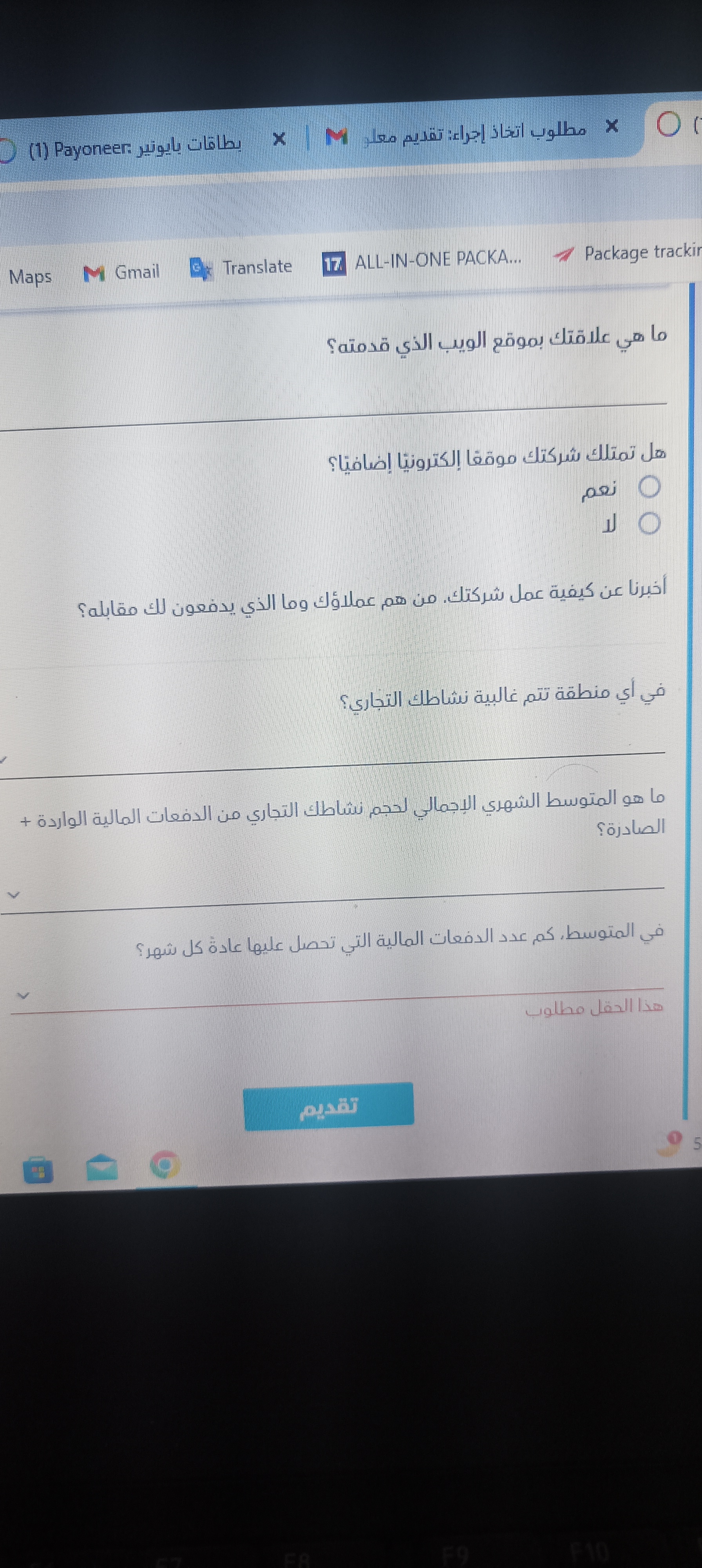 قدمت طلب لبطاقة بايونير .. بعتولي استبيان أعبيه .. شو الاجابات الصحيحه بهاي الحالة اذا سمحتوا