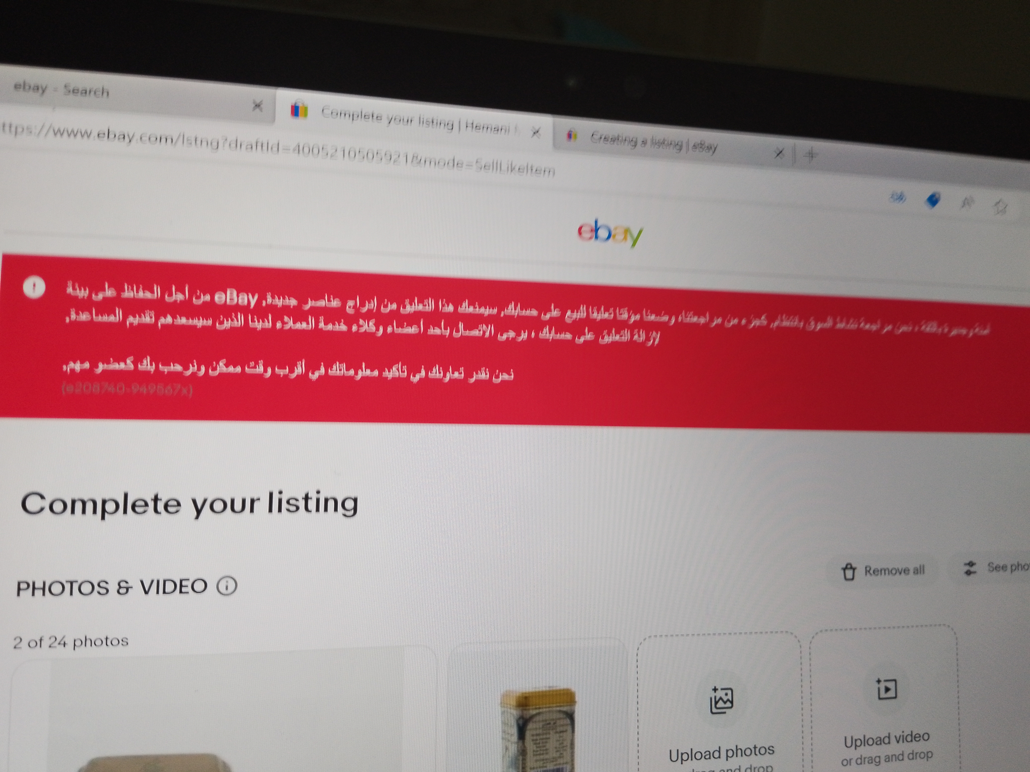 مرحبا ، بحاول ارفع منتج جديد لتوصلني هاي الرسالة , شو الحل