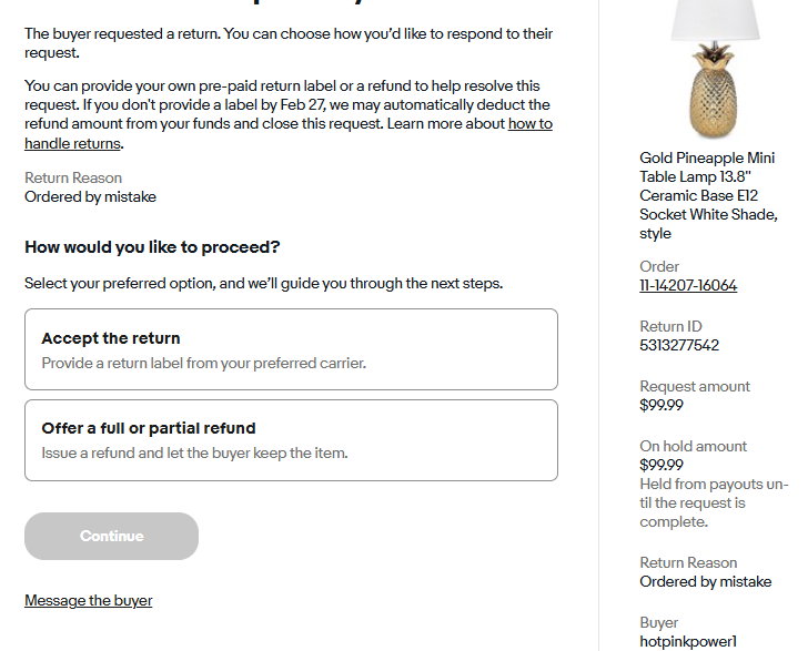 3– هدا ال ال shipping label مفروض إرساله للمشتري عن طريق قسم الرسايل ف الايباي - وتضغطي return accept